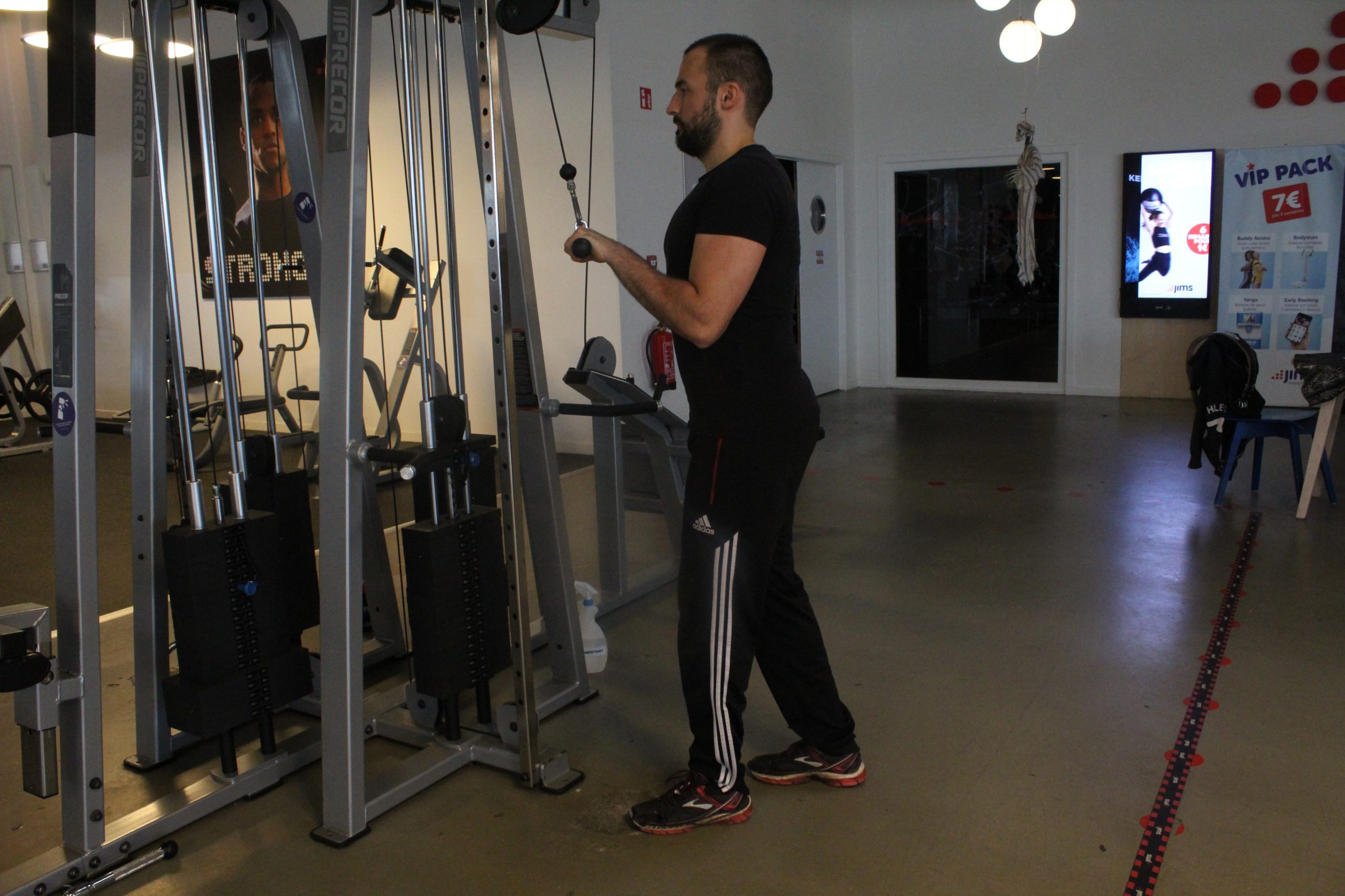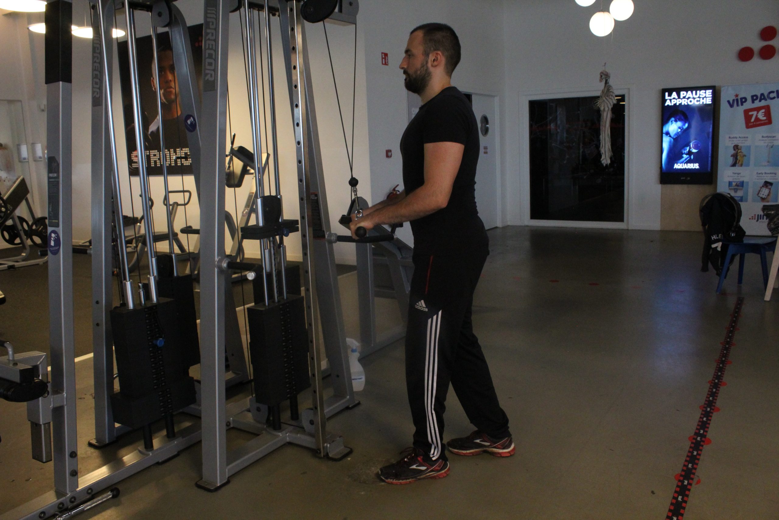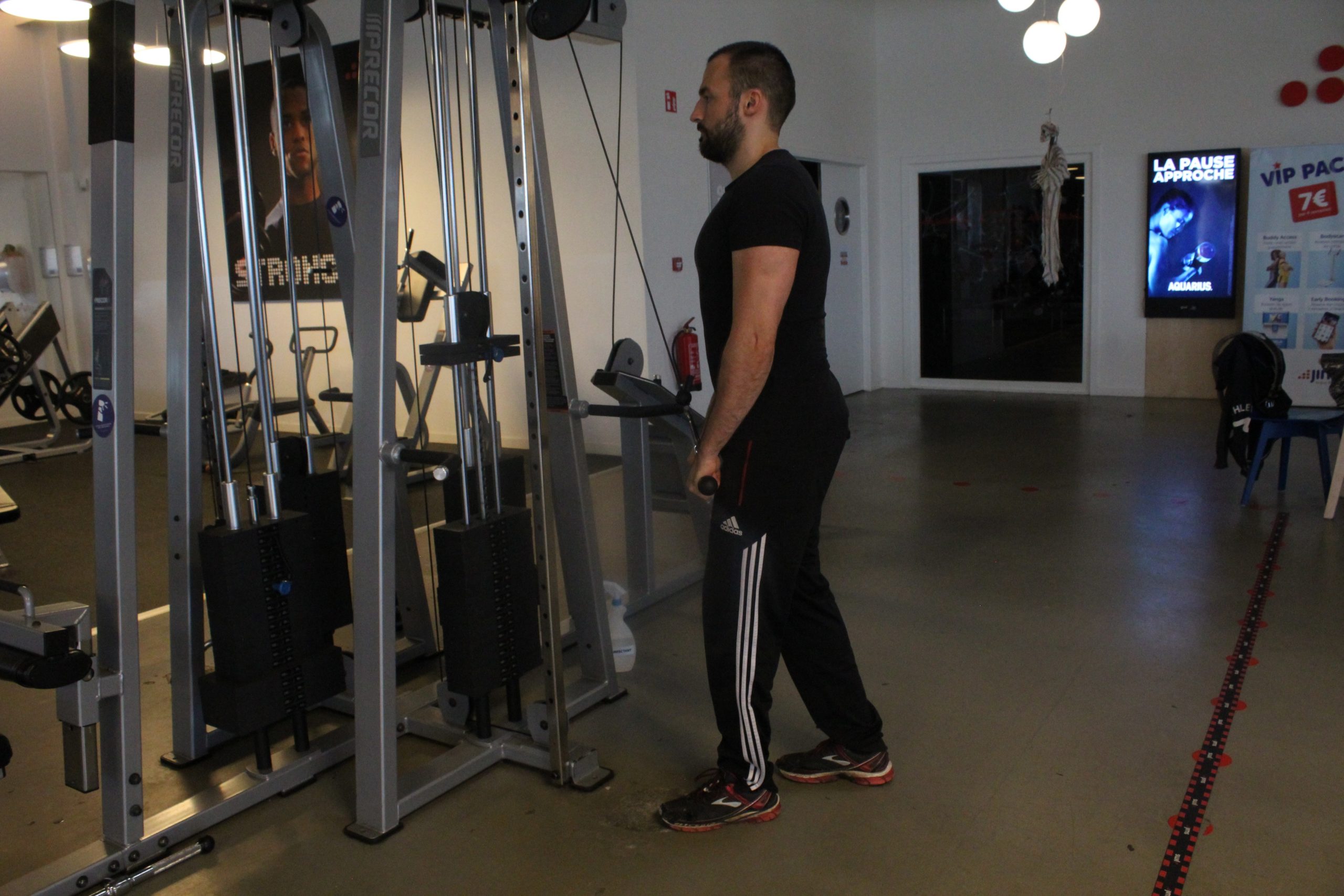 Pour ce faire, effectuez une poussée de la poignée vers le sol, à la force de vos triceps, jusqu’à tendre les bras. Une fois dans la position d’arrivée, gardez la contraction durant au moins une seconde. Puis repartez vers la position initiale, en veillant à ne pas remonter les mains trop haut, et ce, afin de ne pas surétirer les triceps durant la partie basse du mouvement.