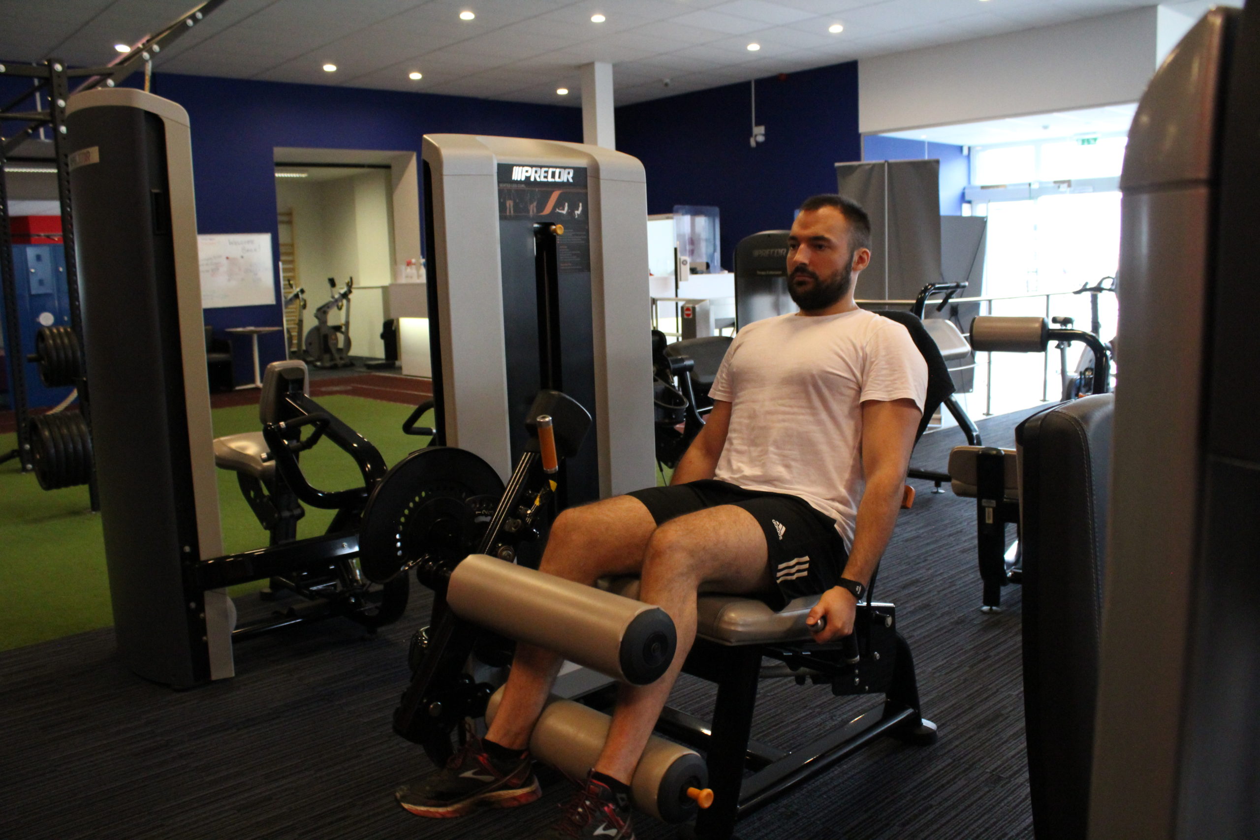 Le leg curl consiste à effectuer des flexions de jambe en partant d’une position assise jambes tendues, jusqu’à les ramener sous votre siège, à la force de vos muscles ischiojambiers.