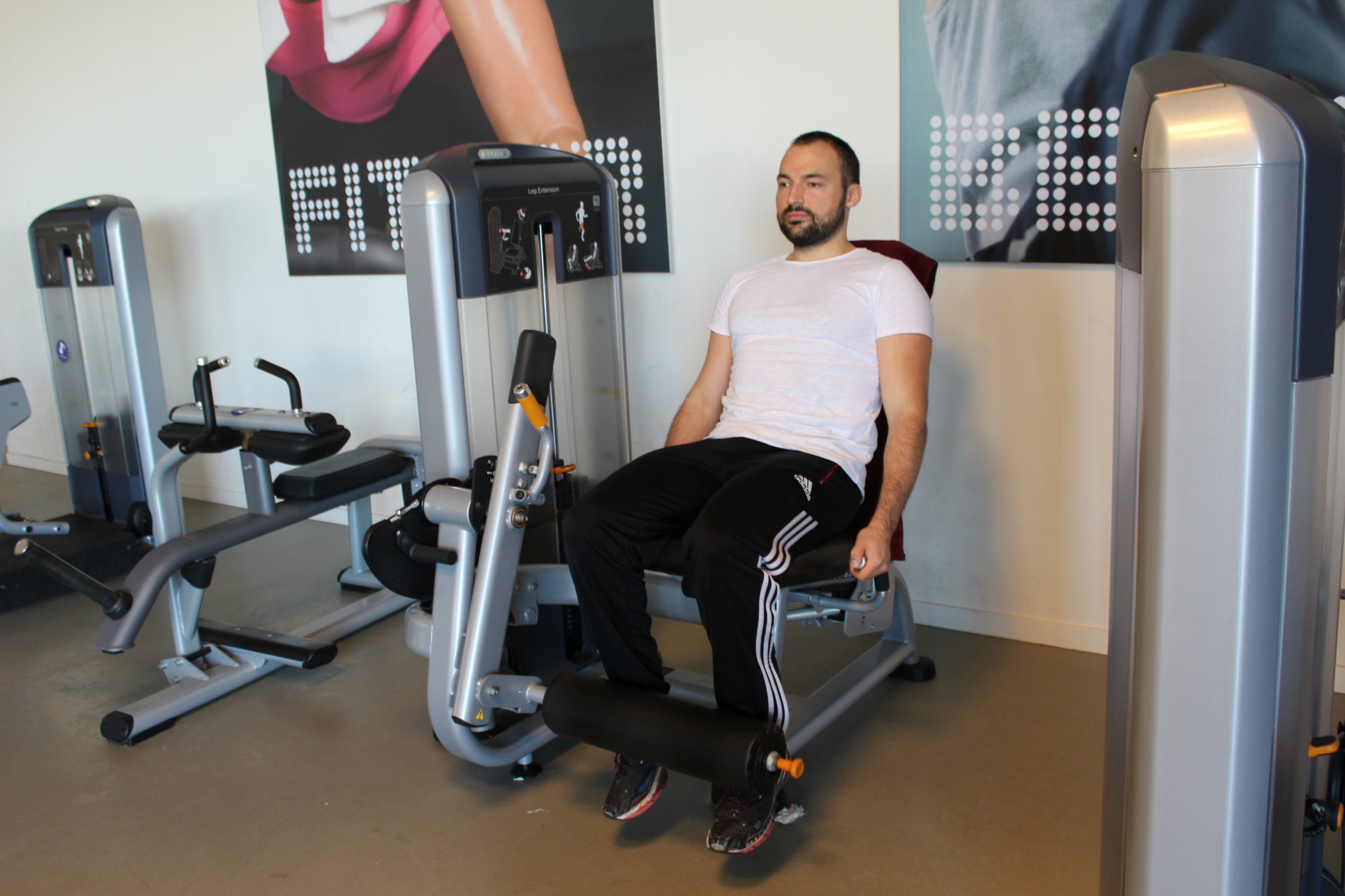 Assis sur le siège de la machine, les mains tenants les poignets, un rondin en mousse devrait être au niveau du bas de vos tibias, le dos bien plaqué contre le dossier. Vous devrez effectuer des extensions de jambes en poussant le rondin, jusqu’à ce que vos jambes soient tendues. Une fois, en haut contractez intensément vos quadriceps. Ensuite, redescendez lentement dans la position initiale.